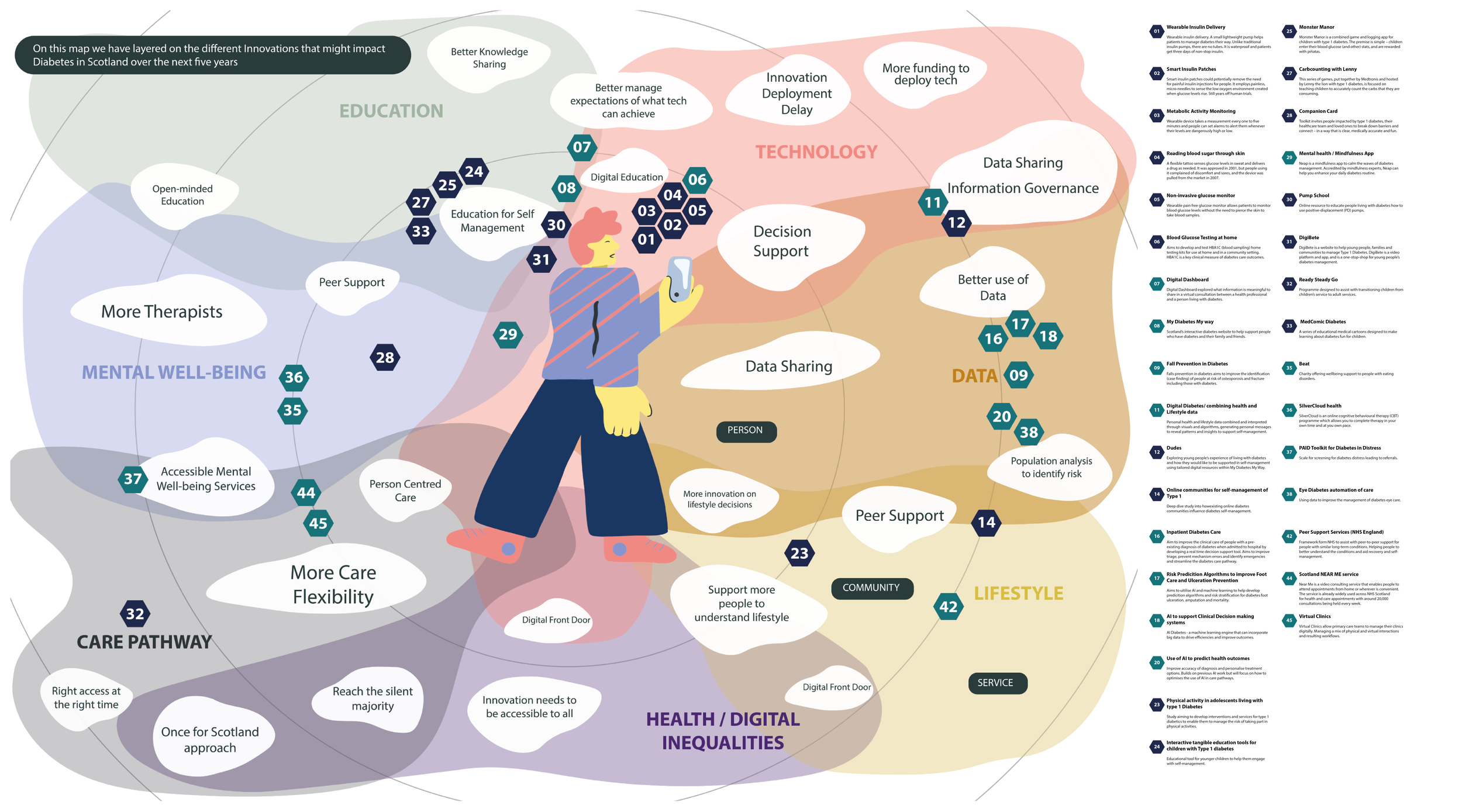 The output of stage one was a map of the main challenges and current innovation projects within the diabetes landscape in Scotland (Figure 2).